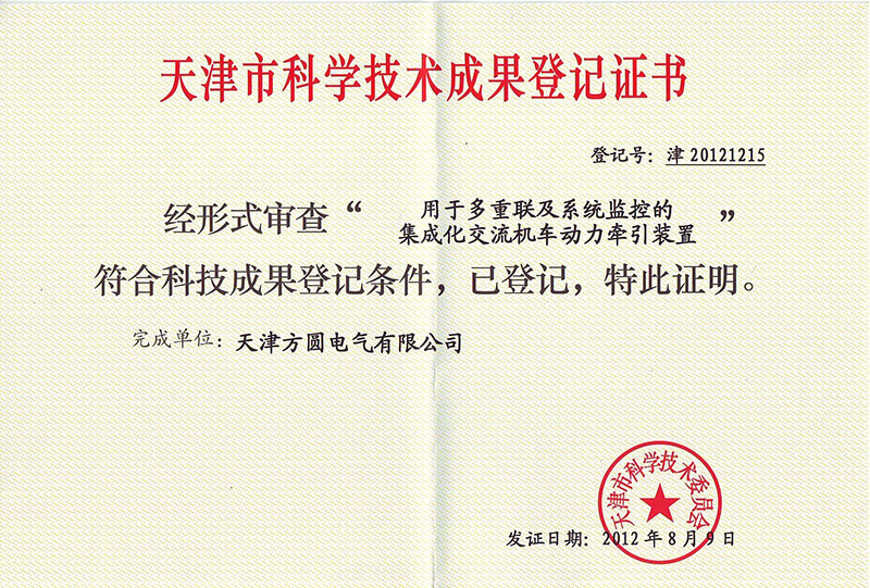 2009年4月,公司承接的市科委科技型中小企业技术创新资金项目——用于多重联机系统监控的集成化交流机车动力牵引装置, 2011年6月顺利结项,并于同年10月由天津市科学技术评价中心进行了结项审核验收。